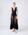 Amara es un vestido que combina elegancia y vanguardia en cada detalle. Inspirado en nuestro icónico best seller Nube, este diseño largo realza la silueta con un escote profundo enmarcado por delicados apliques de tulipanes, aportando un aire artístico y femenino. Su falda de malla transparente, ligera y fluida, envuelve la figura con sensualidad y movimiento, logrando un contraste tan sofisticado como inolvidable.